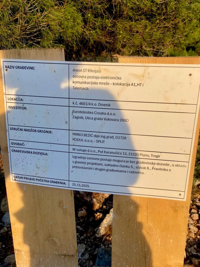 • važeći Prostorni plan Grada Trogira ne predviđa postavljanje telekomunikacijskog odašiljača na Drveniku Velom;